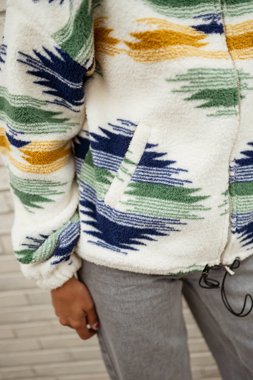 Con pratiche tasche laterali e un vivace motivo nei toni del verde, blu e giallo, questa giacca è perfetta per chi cerca calore e stile. Che tu sia in città o immersa nella natura, questa giacca è l’aggiunta ideale al tuo guardaroba invernale.