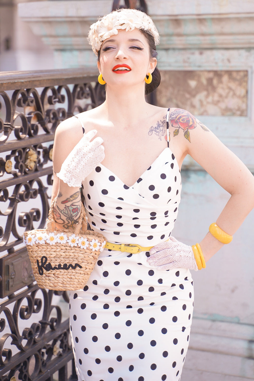Entra nell’eleganza senza tempo con l’Abito Delphina, un sofisticato omaggio al fascino degli anni ‘60 reinterpretato in chiave moderna. Caratterizzato da una silhouette aderente e da delicati spallini sottili, questo capo esprime una femminilità giocosa grazie al classico motivo a pois — ideale per matrimoni, soirée o una serata chic.